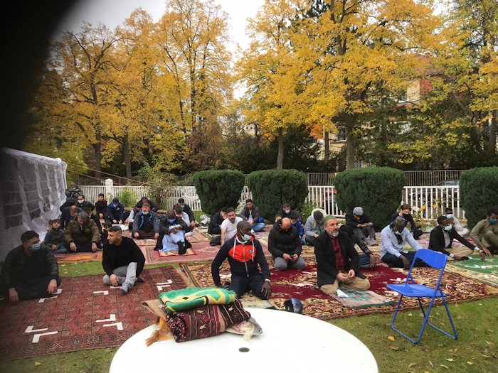 Due to the Mosque renovation work we are holding prayers in the tent and garden outside. It is a blessing of Allah that despite the cold the Friday prayer is well attended.